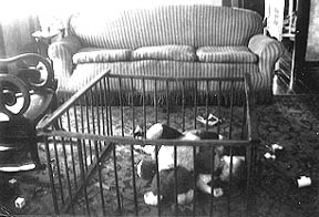9R @ 4, State College, PA, c. 1951, hot days. I discovered red dirt. I liked looking at the cold forests, the farmers' plowing, and the wild hills. I had an imaginary friend, neighbor boys, 2 younger sisters, and a baby brother. My parents rented the Quonset Hut we lived in while my dad went to college and worked in a gas station, and my mother took in laundry: the Tub source. |