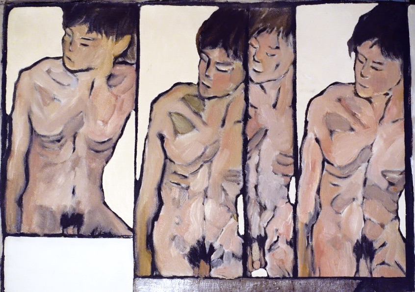 Untitled 4 Panel Invented Male Nude, oils ©9R c. 1970